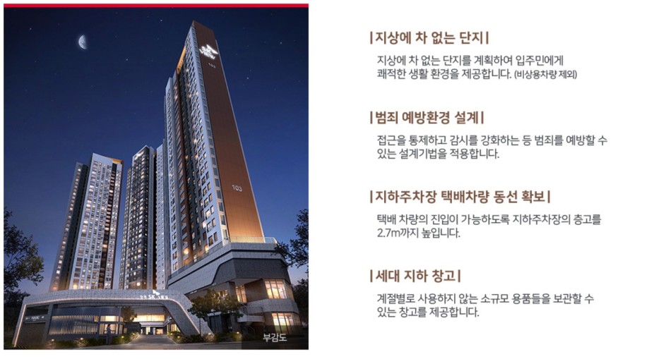 시설 측면에서도 다소 아쉬운 부분들이 있습니다. 주차 시설은 특히 주목할 만한데, 상가를 제외하고 세대별 평균 주차 공간은 1대 미만으로, 주차 환경이 매우 열악합니다.