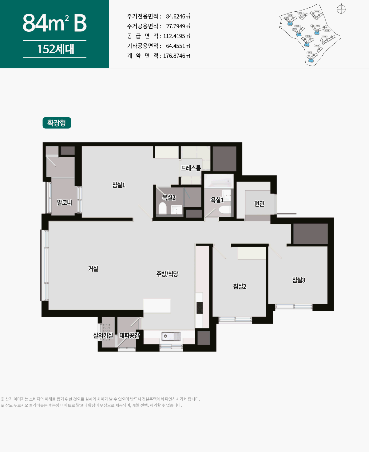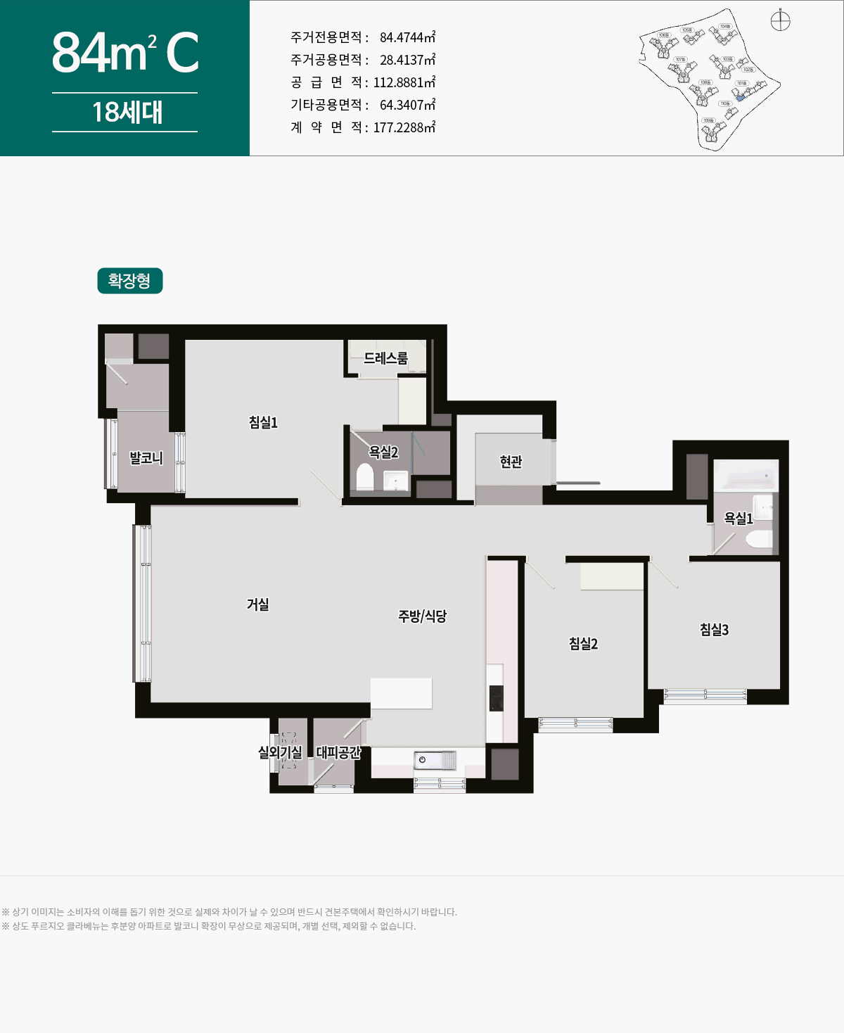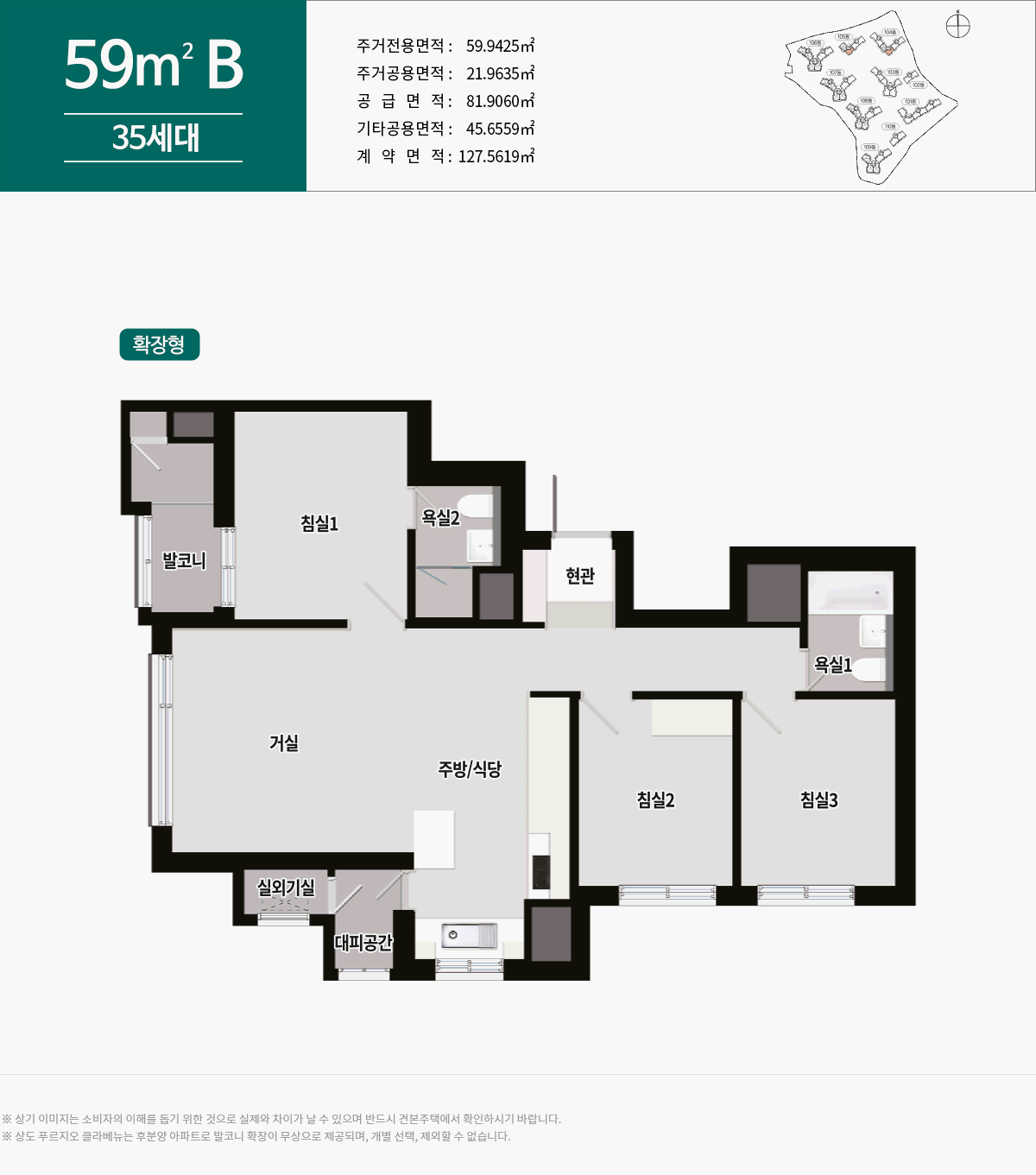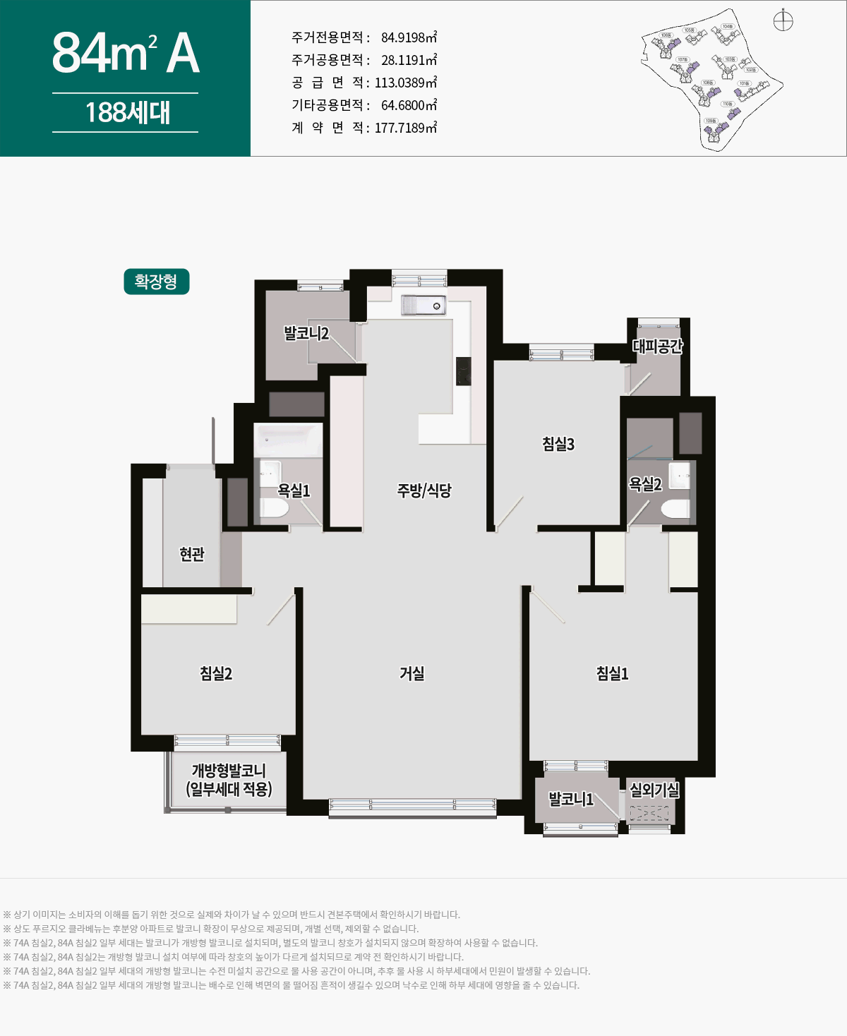평면구조: 59m2A, 59m2B, 74m2A, 84m2A, 84m2B, 84m2C