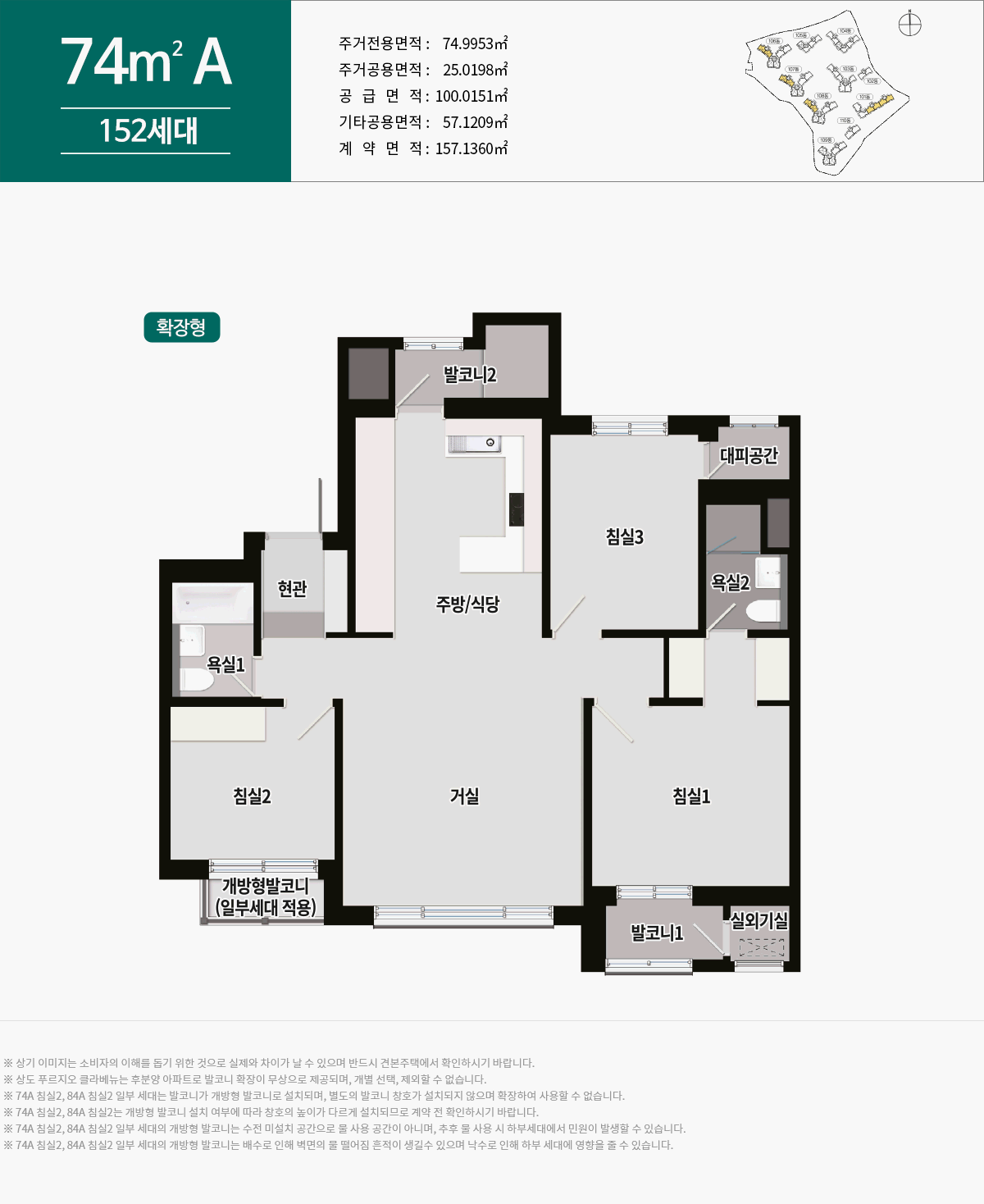 평면구조: 59m2A, 59m2B, 74m2A, 84m2A, 84m2B, 84m2C