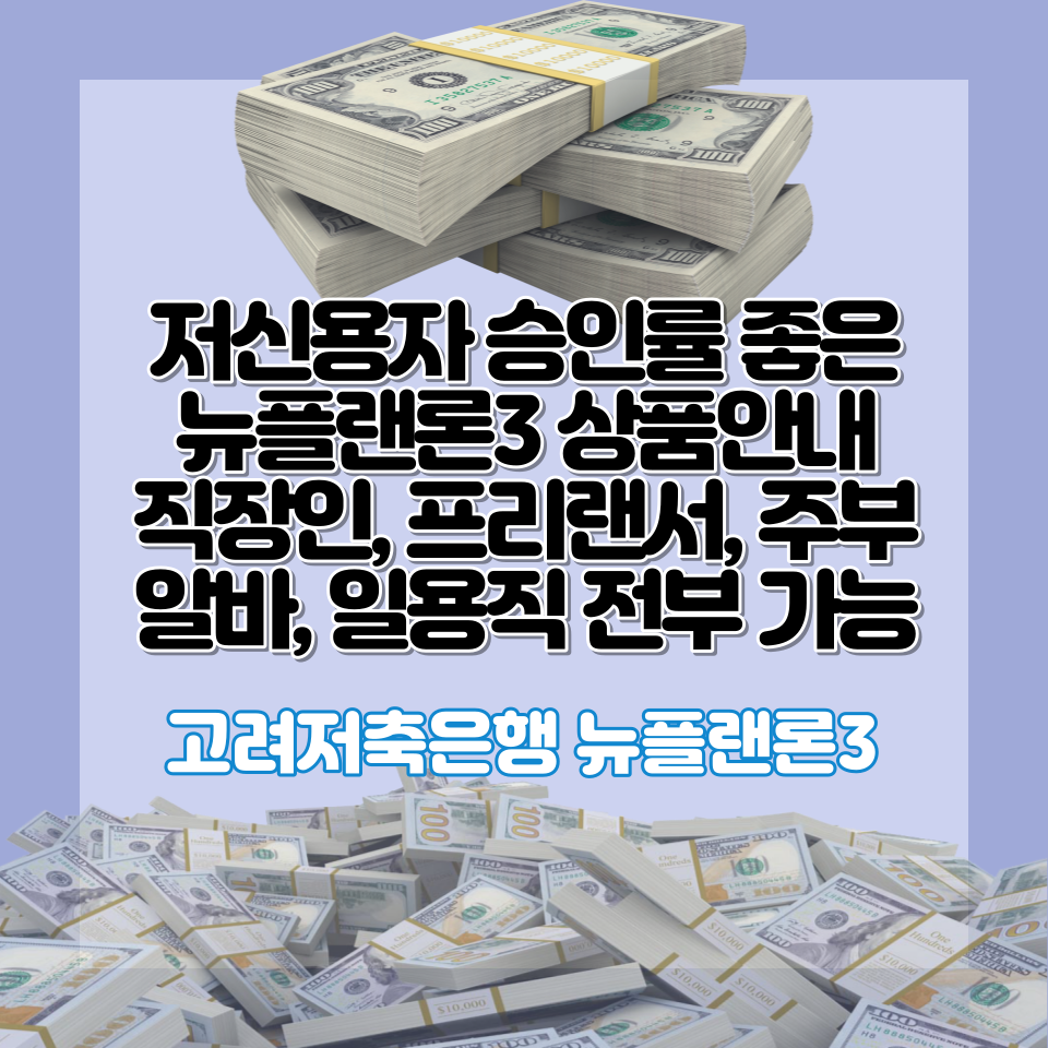 알바, 프리랜서, 저신용자, 주부 대출 가능한 뉴플랜론3 상품안내, 고려저축은행 뉴플랜론3 대출은 소득의 제한 없이 넓은 범위의 대출 대상자를 수용하는 상품으로, 특히 신용 점수나 소득 증빙