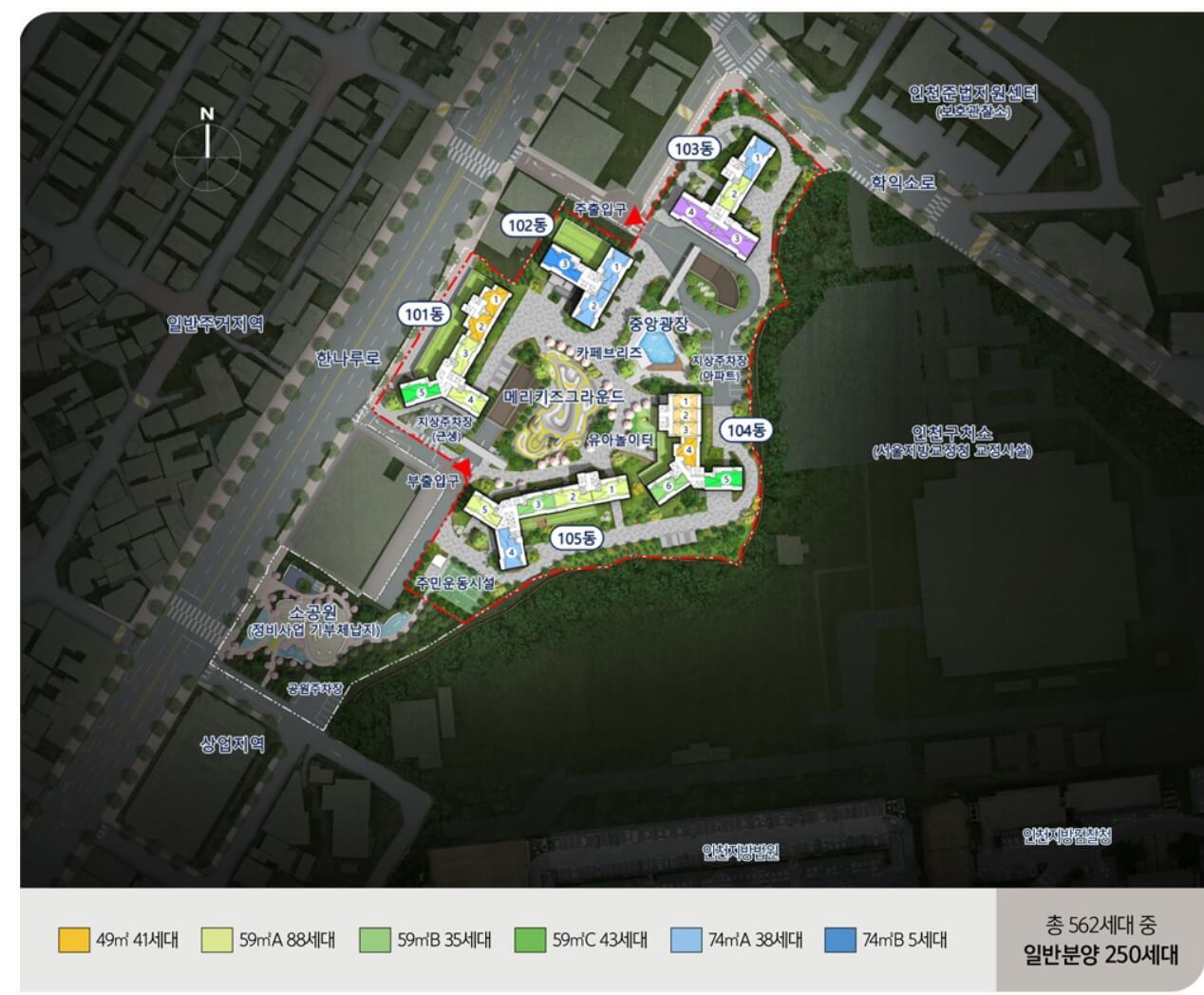 총 562세대 중 250세대가 일반분양으로 공개되며, 나머지 세대는 비공개로 남아있습니다.