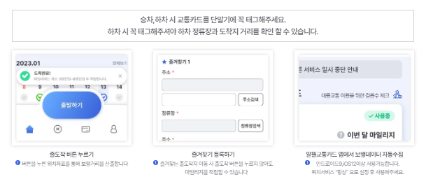 - 카드 변경 후에는, 이전 카드로 대중교통 이용하더라도 마일리지 적립되지 않습니다.