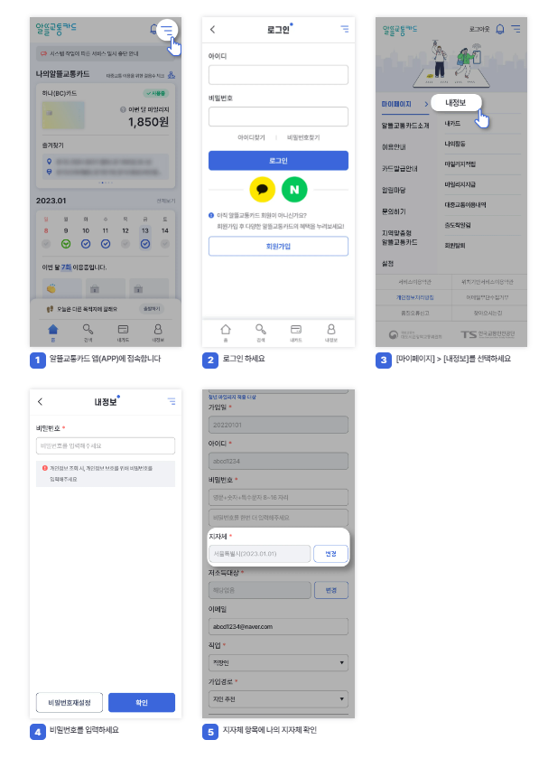 - 카드 변경 방법: [마이페이지] > [나의알뜰교통카드] > [카드변경]