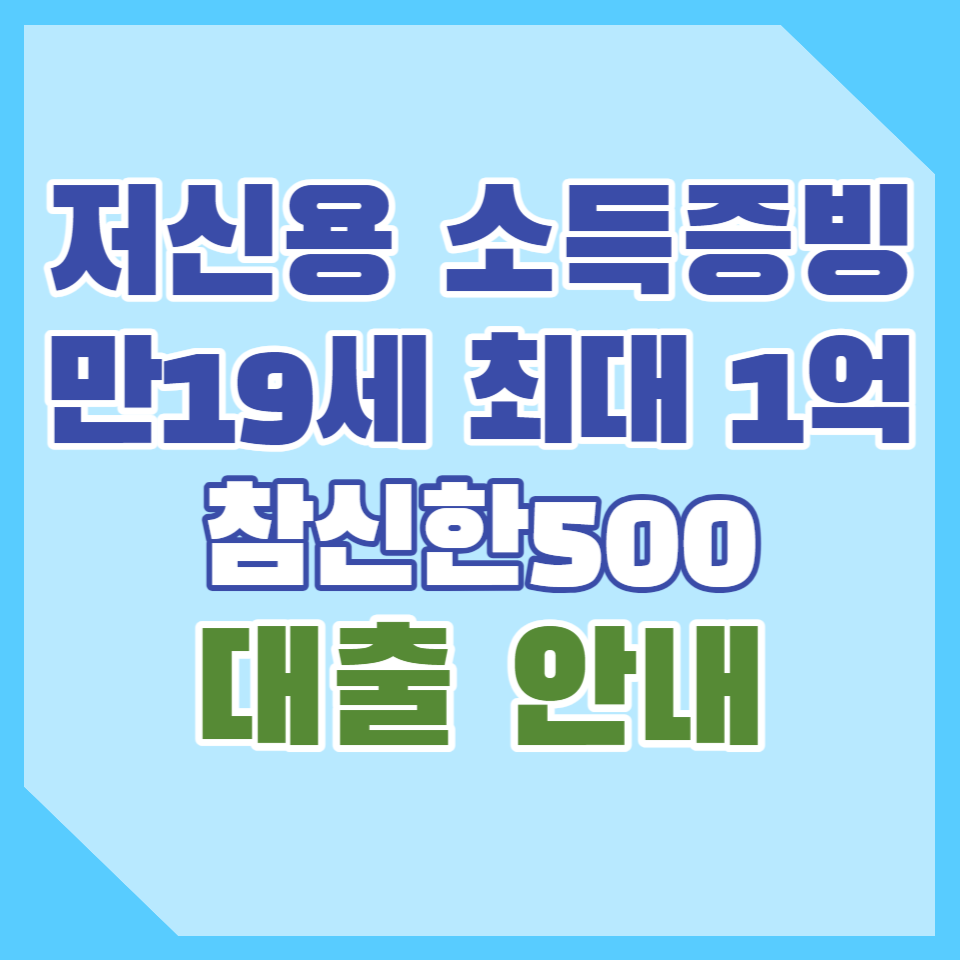 신한저축은행의 참신한500대출은 소득증빙이 가능하고 만19세 이상에 NICE 590점 이상이면 최대 1억까지 대출이 가능한 상품입니다