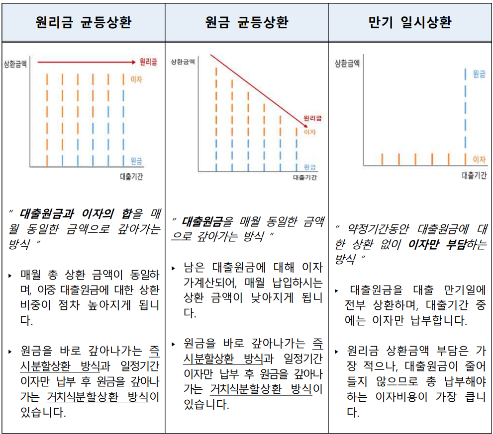 아래 상환방법에 따른 설명글이 있으니 참고해주세요!