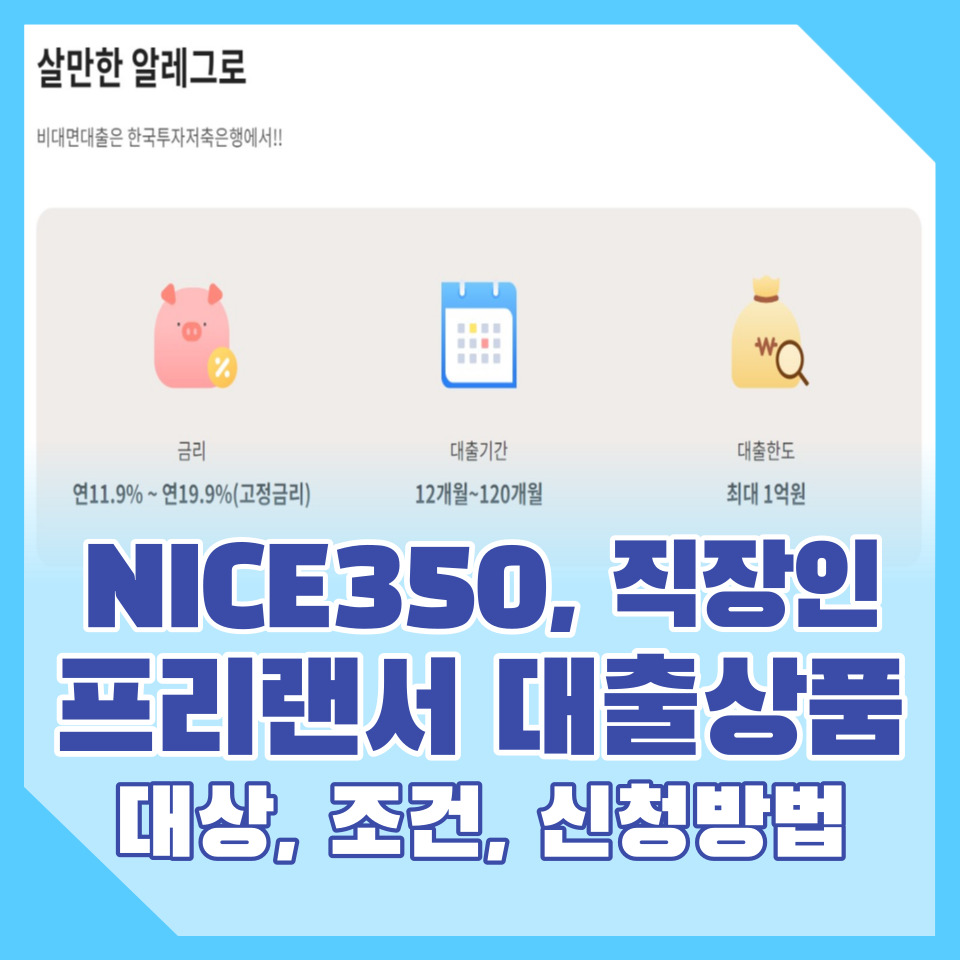 | 대출대상 | 만19세이상 직장인 및 직장인 성격의 프리랜서 / NICE 신용평점 350점 이상인 자 |