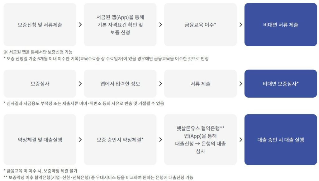 대신 서민금융진흥원(줄여서 서금원)에서 대출신청자의 보증이 필요합니다.