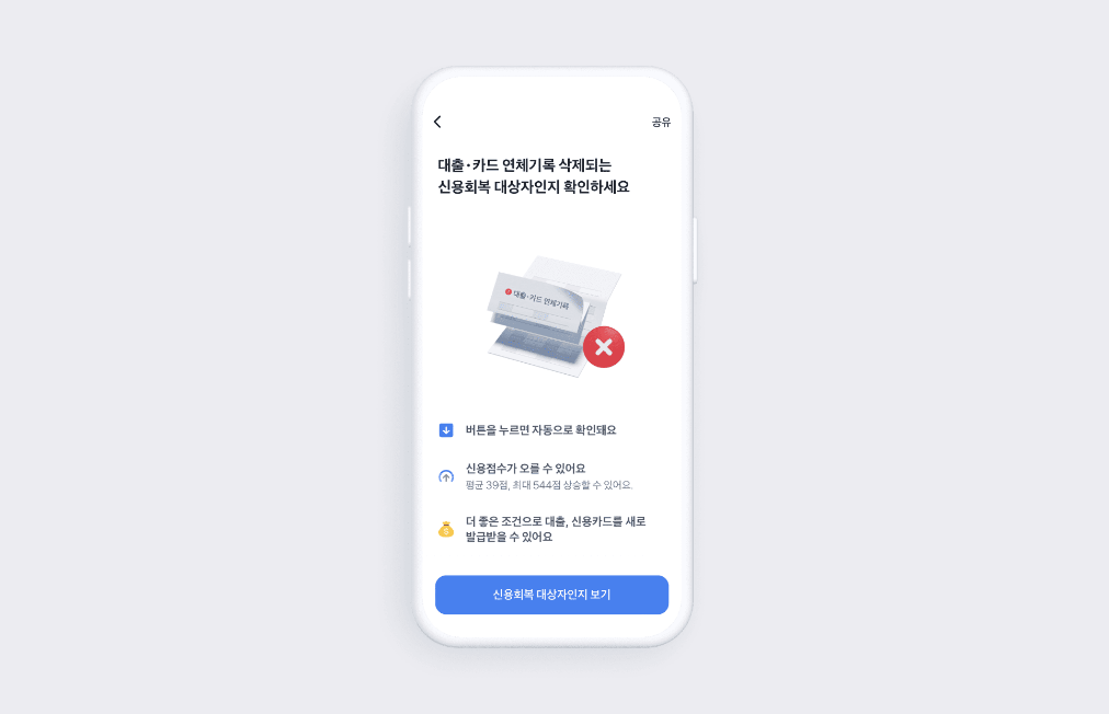 금융기관에 연체 이력이 공유되지 않으므로 신용점수에 긍정적인 효과가 있을 것이다.