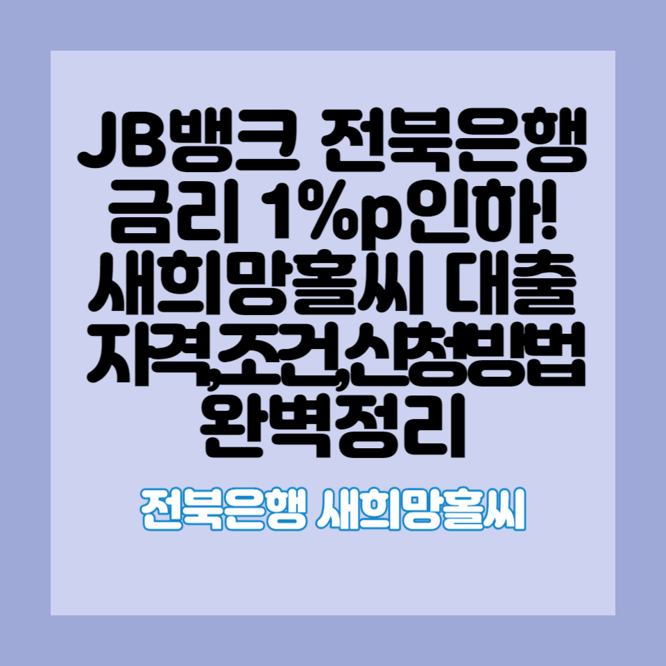 전북은행의 '새희망홀씨 대출'과 같은 대출 상품은 고금리 대출을 저금리로 전환하는 데 큰 도움이 되며, 이를 통해 경제적 부담을 덜 수 있습니다. 그러나 이러한 대출 상품 또한 신청 절차와 조건을 충족하는 것이 중요하니, 신청 전에 반드시 확인하시기 바랍니다.