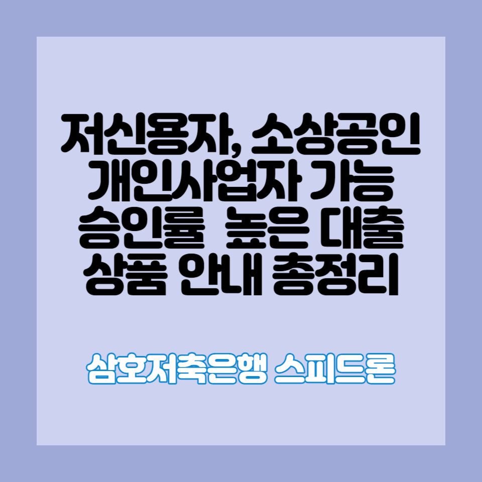따라서, 신용점수가 낮아서 대출 받기가 어려움을 겪고 계신 분들께서는, 이번에 제가 자세히 설명드릴 삼호저축은행 스피드론 상품을 활용해 보시는 것을 고려해 보시길 바랍니다.