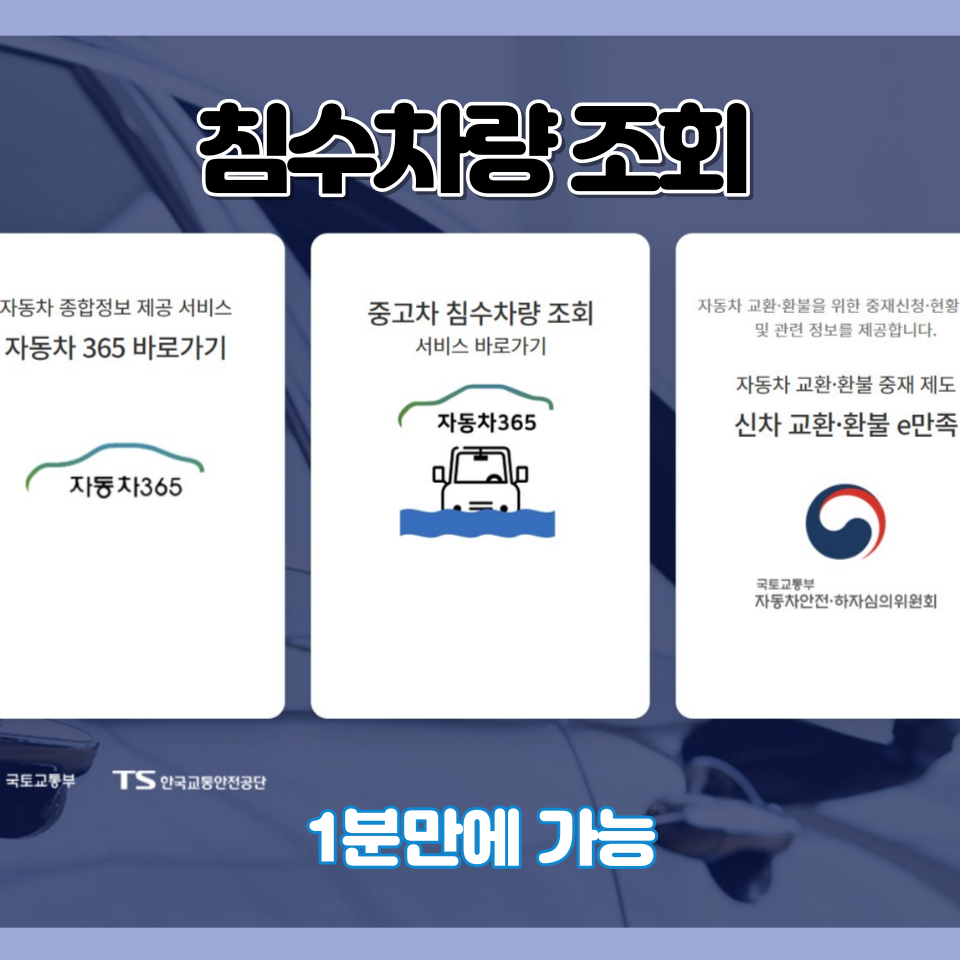 오늘은 중고차 침수차에 대응하기 위해 바로 1분만에 확인할 수 있는 침수차 조회기능에 대해서 알아보겠습니다.